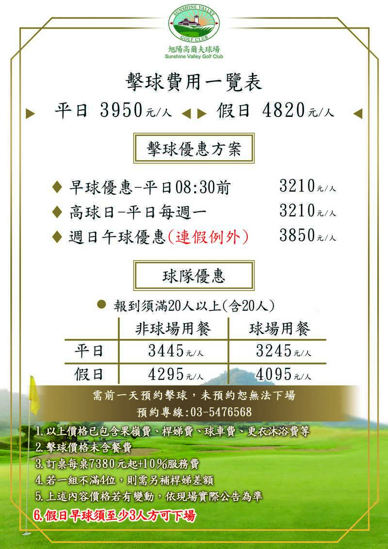 © 2023 旭陽高爾夫球場. 圖文版權所有 by Sunshine Valley Golf Club.