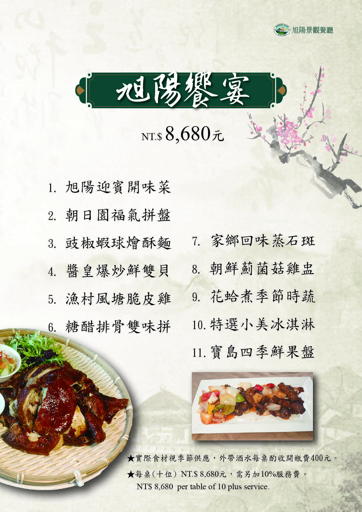 每桌(十位) NT$8,680 需另加10%服務費