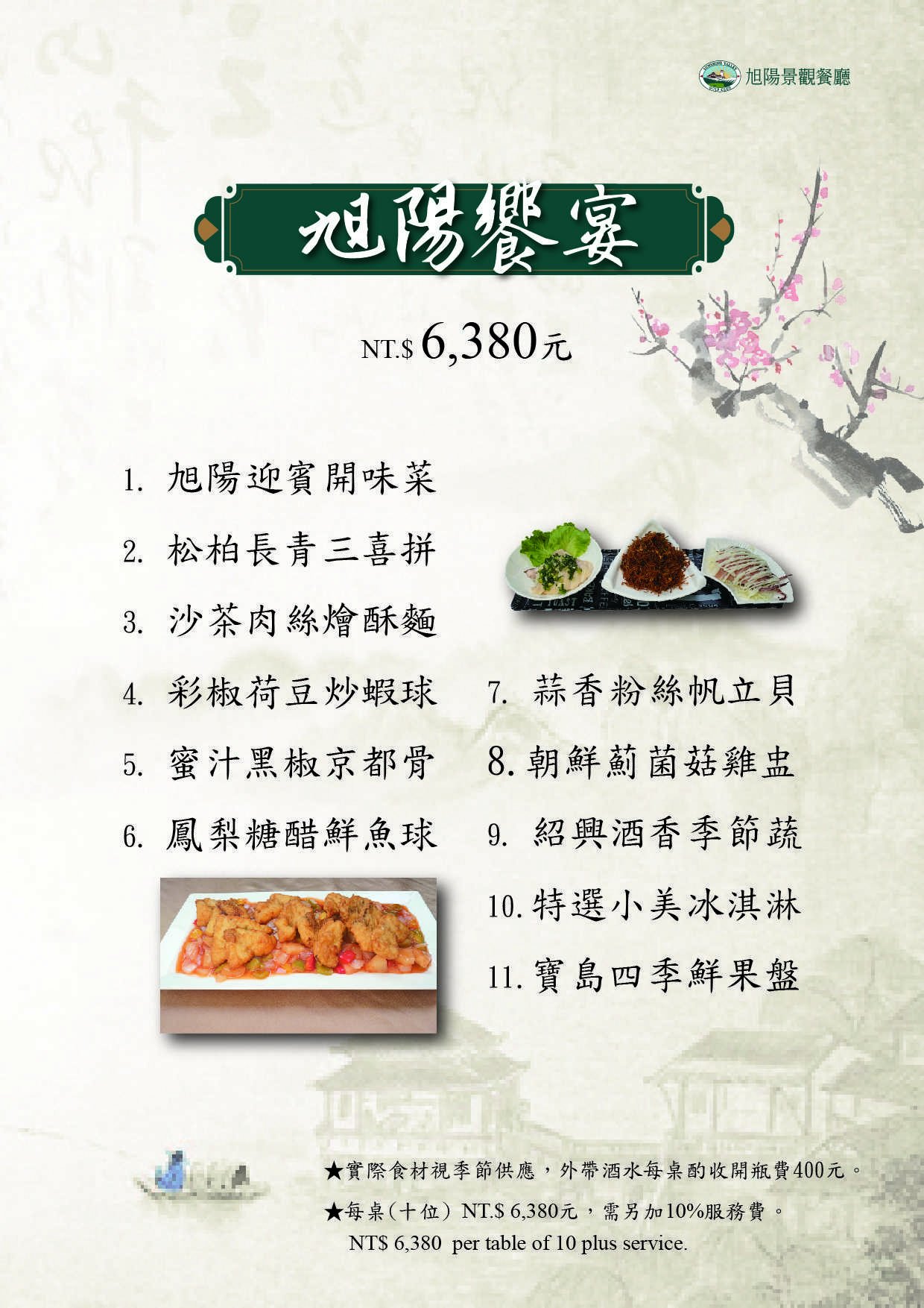 每桌(十位) NT$6,380 需另加10%服務費