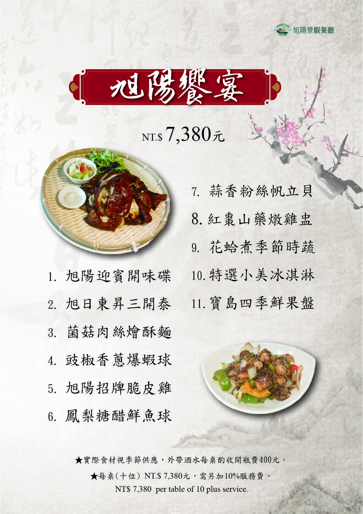 每桌(十位) NT$7,380 需另加10%服務費