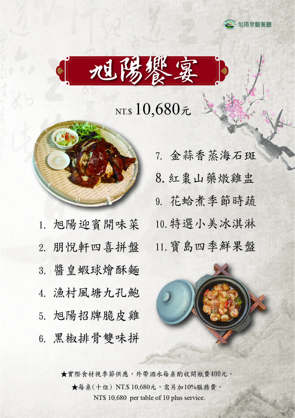 每桌(十位) NT$10,680 需另加10%服務費