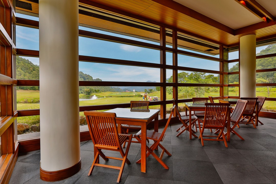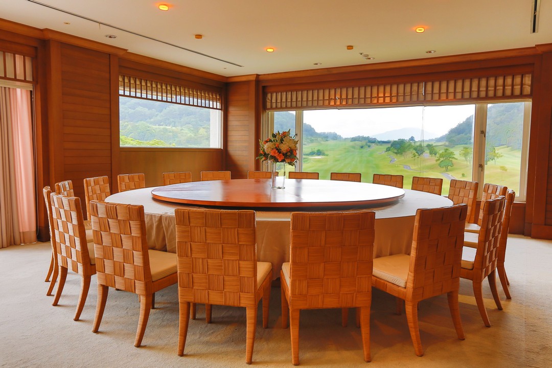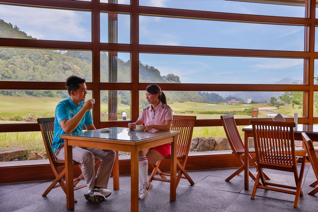 會館二樓的景觀餐廳,採用大量收納自然光線的概念,享用道地的台式、客家菜餚的同時,整個球場的自然美景完全呈現在眼前;想來點特別的,更準備了正統的東南亞及韓國料理,隨著窗外的迷人景緻變換心境;八個大小不同型態的貴賓廳,會議宴客私人聚會,既體面又饒富特色。