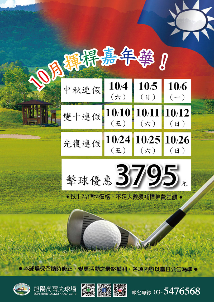 中秋、雙十、光復節連假期間,特別推出擊球優惠價 $3,795 元!